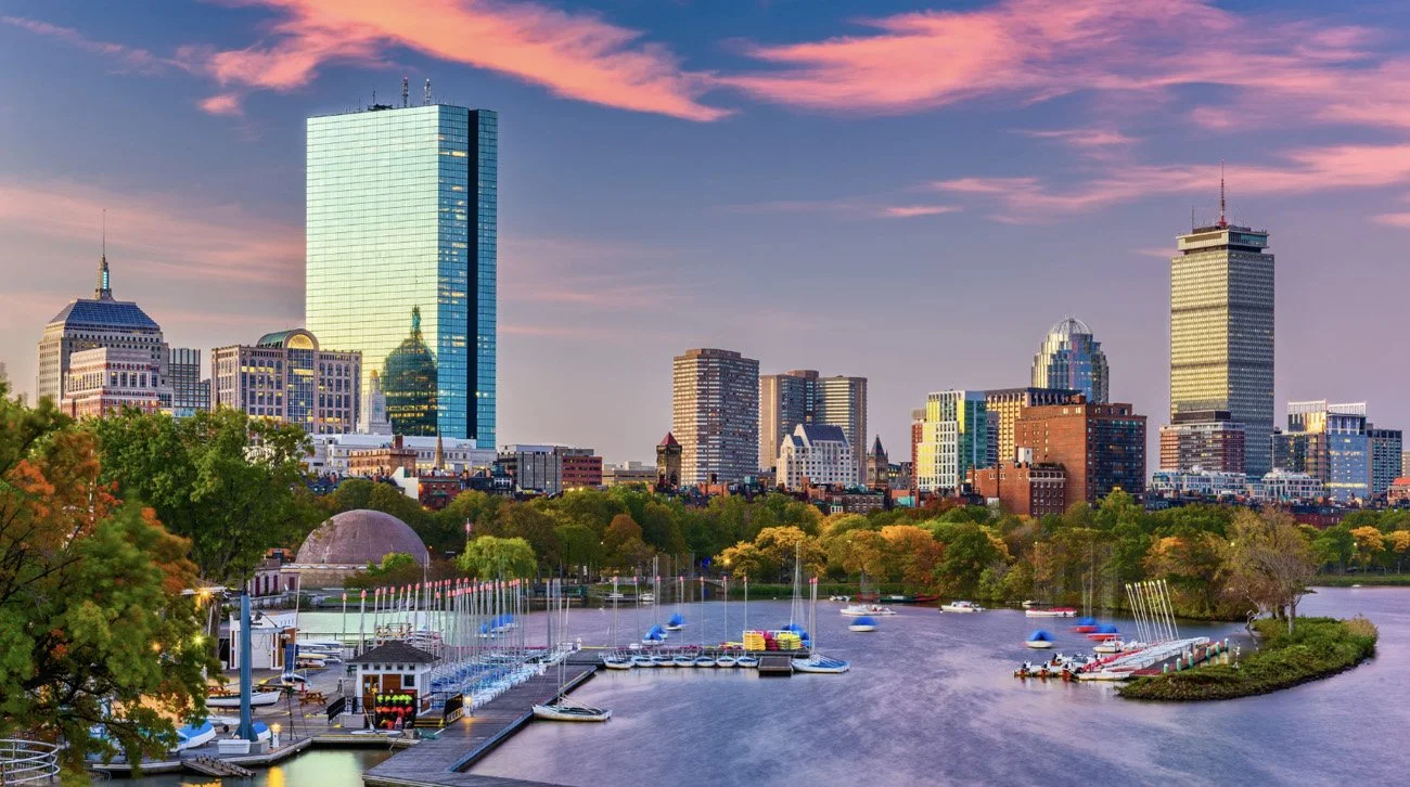 The Esplanade pathway is one of Boston’s most loved escapes. Locals walk, run, bike, and picnic along the water while the sun drops behind Back Bay. It is a simple and unforgettable view that defines the city.