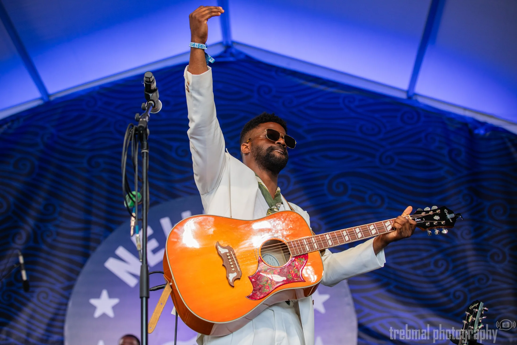 Newport Folk Festival Day 2 was packed with more action than the first day. The Hold Steady had some steady rock and roll for the Quad stage, Aimee Mann and John Oates featuring Guthrie Trapp took the Harbor Stage by a storm. The main stage had the more rocking version of Jason Isbell and the 400 Unit and the great jam-rock band Goose. The day ended with Jon Batiste and his friends, who did a literal rain dance. Thankfully the rain held off for the most part, and only cut Batiste's set by 15minutes, still in time for smoked ribs for the closest crowd members.